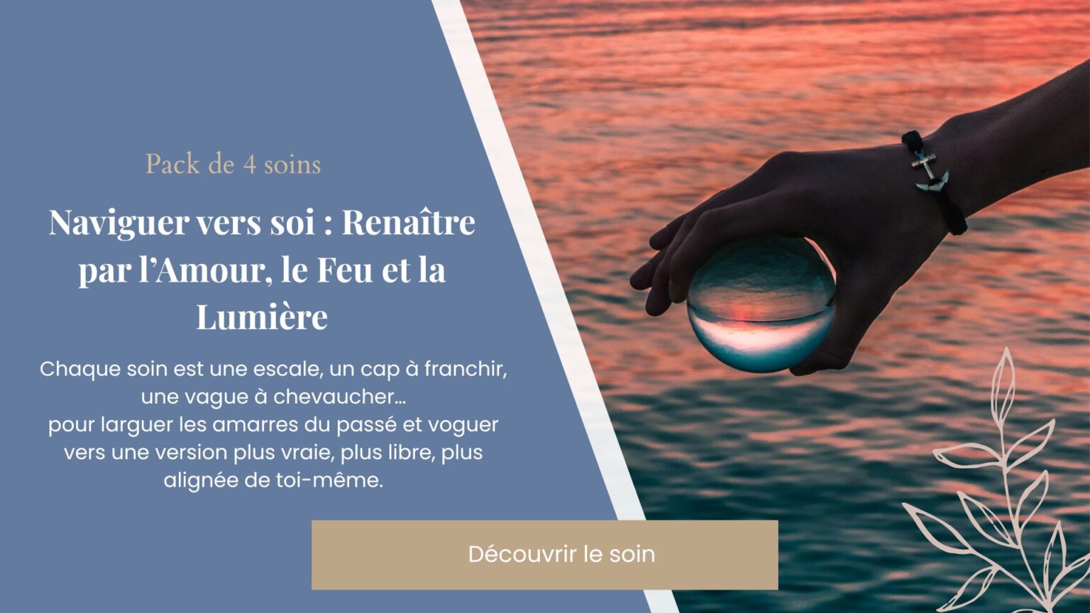 Tu es le marin, la capitaine ou le capitaine de ton propre navire. Chaque soin est une escale, un cap à franchir, une vague à chevaucher…pour larguer les amarres du passé et voguer vers une version plus vraie, plus libre, plus alignée de toi-même.